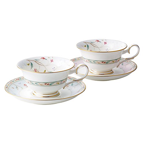 Noritake ノリタケ カップ & ソーサー ( 色変り ペアセット ) ( コーヒー ティー 兼用) 215cc 花更紗 2客 ピンク ・ ブ