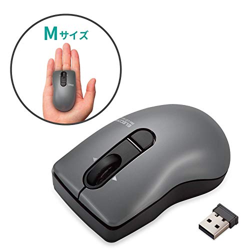 エレコム マウス ワイヤレス (レシーバー付属) Mサイズ 3ボタン 静音 クリック音95%軽減 チルトホイール Micro Gra