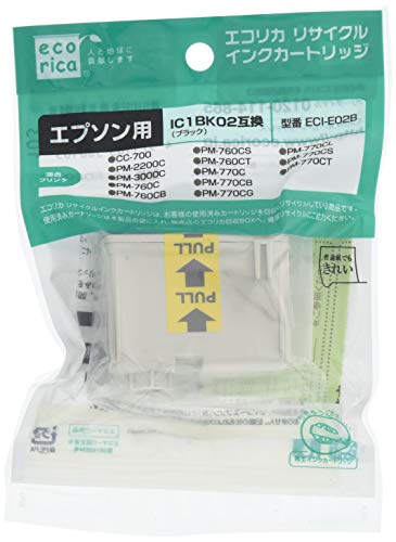 エコリカ エプソン(Epson)対応 リサイクル インクカートリッジ ブラック IC1BK02 (目印:蝶) ECI-E02B