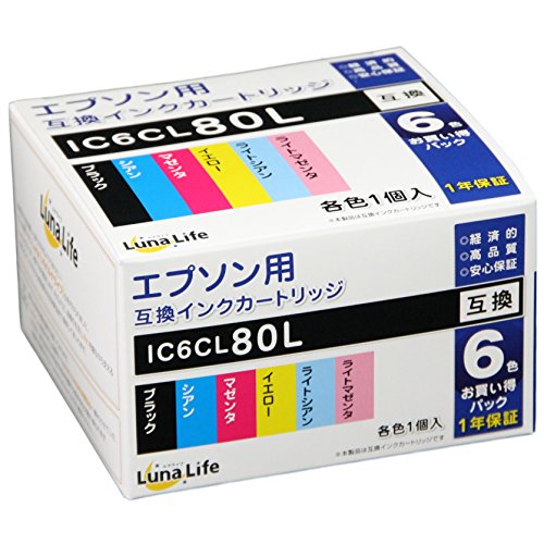 エプソン用 互換インクカートリッジ EPSON IC6CL80L 6本パック 安心の1年保証 Luna Life ルナライフ LN EP80/6P