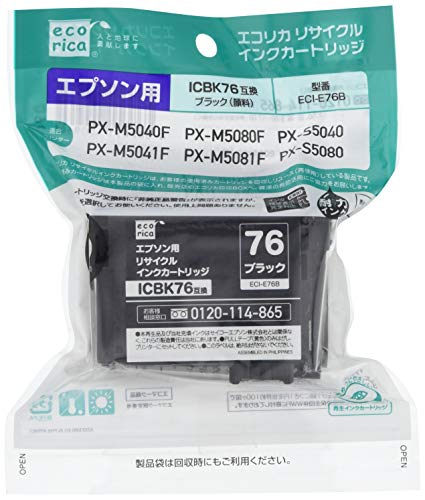 エコリカ エプソン ICBK76対応リサイクルインクカートリッジ ブラック ECI-E76B 目印:地球儀