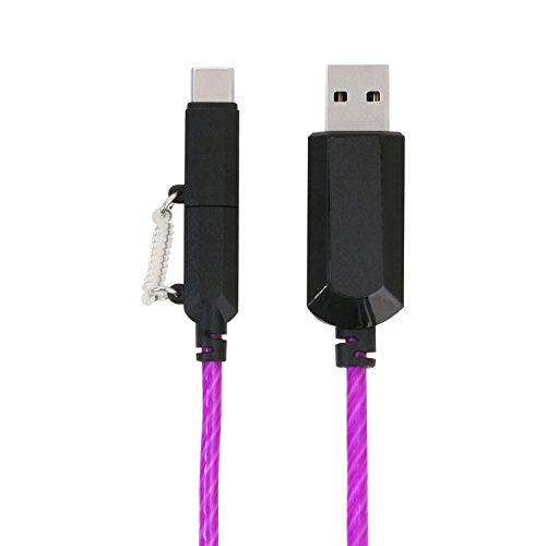 F.S.C. Type-C 変換アダプタ付 イルミネーションケーブル ELライト搭載 最大出力5V/2.4A 最大480Mbps USB2.0規格 パープ