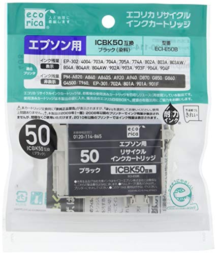 エコリカ エプソン(Epson)対応 リサイクル インクカートリッジ ブラック ICBK50 (目印:ふうせん) ECI-E50B